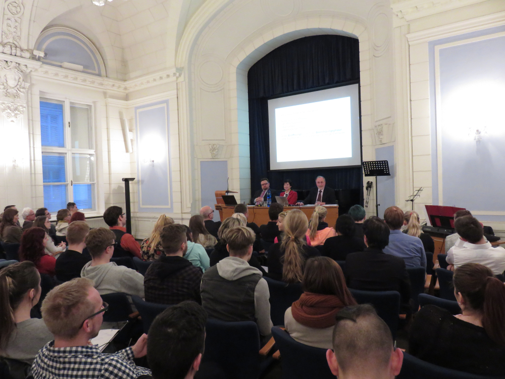 Rozlučková přednáška tohoto světově významného germanisty s názvem "Die Bedeutung der Deutschen Sprache in Europa", se konala 23.2.2016 v Aule Ostravské univerzity. Slavnostní atmosféru podtrhl nejen projev děkana Filozofické fakulty prof. Aleš Zářického, ale také průvodní slovo prof. Lenky Vaňkové, děkovná řeč Edity Pelikánové a v neposlední řadě také hudební vystoupení dr. Marka Gajdy. Vaše obrovská účast – někteří se do Auly ani nevešli – nás moc těší. Věříme, že jste si přednášku i celý program užili a že jste získali další důvody pro seriózní studium němčiny.