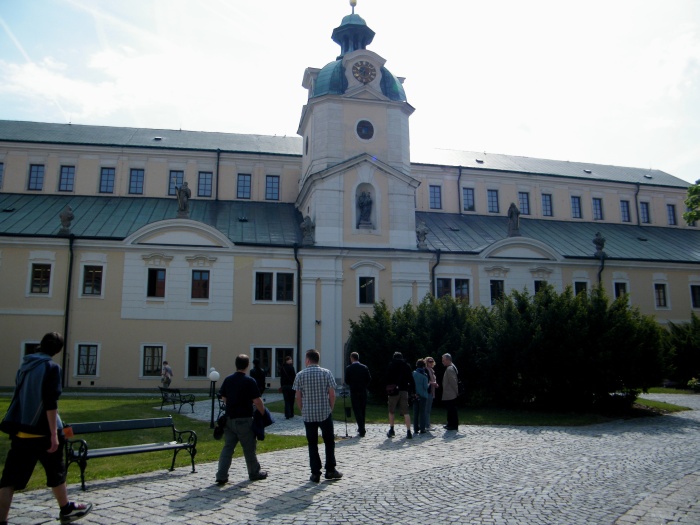 Mezi 10. a 12. květnem se uskutečnila odborná exkurze katedry dějin umění zaměřená na památky staroslavné Kutné Hory a jejího okolí. Výpravu, které se zúčastnil vedle studentů a pedagogů katedry také pan děkan doc. Zářický, doplnili kolegové a doktorandi z Ústavu dějin umění partnerské Univerzity kardinála Stafana Wyszyńského ve Varšavě. První zastávkou v náročném programu byl empírový zámek Kačina, jehož autentický exteriér i krásné interiéry s unikátní knihovnou jsou trvalým lákadlem nejen pro turisty, ale také pro filmaře. Památku zcela odlišného charakteru představuje románský kostel sv. Jakuba v obci Jakub vzdálený od Kačiny několik málo kilometrů. Kostelík je unikátní jak původní románskou tribunou, jež sloužila šlechtickým zakladatelům kostela, tak zejména jedinečným souborem exteriérových soch, jimiž je osazeno průčelí. Podobně jako architekturu kostelíka, také sochy můžeme datovat do 60. let 12. století a je možné, že jsou dílem cisterciácké huti nedalekého kláštera v Sedlci. Dalším cílem naší výpravy byla prohlídka jedinečné kubistické vily v nedalekých Libodřicích, kterou nechal jako své sídlo mezi léty 1912 a 1914 postavit místní velkostatkář Adolf Bauer. Autorem luxusního, ale i přesto intimně a příjemně působícího sídla postrádajícího nabubřelost a nevkus obdobných dnešních sídel ve stylu „podnikatelského baroka“, je Josef Gočár. Vila je veřejnosti přístupná od loňského dubna a její návštěvu lze jen doporučit nejen díky zrestaurovaným interiérům a expozici kubistického designu. Vyvrcholením prvního dne byla návštěva dalšího luxusního podnikatelského sídla – zámku v Ratboři. Jeho dnešní podoba je výsledkem přestavby starší vily místní podnikatelské rodiny Mandelíků. V roce 1910 pozvali bratři Mandelíkové architekta Jana Kotěru, který novou podobu zámku pojal jako moderní panské sídlo s trojkřídlou kompozicí s centrální kupolí a s alegorickými sochami Hmoty a Ducha v průčelí od Jana Štursy. Zámek je v současné době v soukromých rukách a funguje pod názvem Chateau Kotěra jako exkluzivní hotel s autentickými citlivě zrestaurovanými interiéry a restaurací, o jejíž vynikající kvalitě jsme měli možnost se sami přesvědčit.