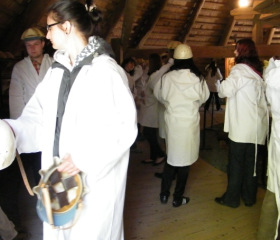 Druhý den naší exkurze byl věnován pouze Kutné Hoře a jejím jedinečným památkám. Nemohla proto chybět návštěva Muzea stříbra v Hrádku, jehož budova je sama o sobě unikátem a příkladem pozdně středověkého šlechtického městského sídla významného rodu Smíšků z Vrchovišť, jenž je nedílně spjat s dějinami pozdně středověké Kutné Hory a dobýváním stříbra. Součástí muzea je rovněž prohlídka středověkého důlního díla a tak nám nezbylo, než si obléci bílé havířské „kutny“ a sfárat do středověkého dolu Osel, jehož největší hloubka činí asi 600 metrů pod zemí. Tak hluboko jsme naštěstí nemuseli, a i když jsme oproti středověkým havířům byli vybaveni přilbami a elektrickými svítilnami, představa tvrdé práce prakticky ve tmě, v několika set metrové hloubce a v úzkých a někdy pouze něco málo přes metr vysokých chodbách osvětlených bludičkami z lojových kroužků středověkých svítilen, naháněla husí kůži. Návštěva nejstaršího kutnohorského městského tzv. vysokého kostela sv. Jakuba byla proto skutečným balzámem. Dnešní podoba kostela je výsledkem řady středověkých adaptací, nicméně interiér je jedním z nejkrásnějších příkladů tzv. lineární gotiky u nás. Unikátní jsou rovněž sedile – původní dřevěné chórové lavice z 90. let 15. století s originální řezbářskou výzdobou. V Čechách se dochovaly pouze tři kusy těchto středověkých sedilí, z toho dvě právě v chrámu sv. Jakuba. Další zastávkou na procházce Kutnou Horou byl Vlašský dvůr – sídlo mincmistra a místo, kde se razil slavný stříbrný pražský groš. Z původní architektury sídla, které dal honosně přestavět Václav IV., se bohužel dochovaly pouze fragmenty. Mezi nejkrásnější ale jistě patří jedinečný polygonální arkýř kaple sv. Václava, jenž je jedním z příkladů dvorského tzv. krásného stylu v gotické architektuře kolem roku 1400 u nás. Po návštěvě Vlašského dvora následoval krátký přesun k baroknímu chrámu sv. Jana Nepomuckého postaveného v polovině 18. století podle projektů architektů F. M. Kaňky a K. I. Dientzenhofera a dále k jednomu z nejkrásnějších chrámů v Čechách vůbec, ke kostelu sv. Barbory. Gotickou katedrálu, stavěnou z peněžních darů kutnohorských měšťanů i havířů začala stavět parléřovská huť v roce 1388. Svou velkolepostí, architektonickou kvalitou i uměleckou výzdobou měl chrám demonstrovat ekonomickou sílu i politické ambice stříbrného města, jež za vlády Jagellonců směle soutěžilo s Prahou. Úchvatné jsou nejen nekonečné linie kroužené klenby halového trojlodí projektované geniálním architektem Benediktem Riedem, ale rovněž celková originální koncepce chrámu, jež představuje v rámci středoevropské pozdní gotiky unikát. Zajímavou analogií k pražskému chrámu sv. Víta je mimo jiné také fakt, že podobně jako pražská katedrála, také sv. Barbora se dočkala svého dokončení až na počátku 20. století. Závěr náročného dne někteří nadšenci strávili v nedávno otevřené Galerii Středočeského kraje (GASK), ti vyčerpanější pak zamířili do nedaleké stylové pivnice Dačický, aby své bohaté zážitky náležitě prodiskutovali nad mokem stejného jména z místního pivovaru, či nad sklenicí místní speciality: long drinku Koudelník.