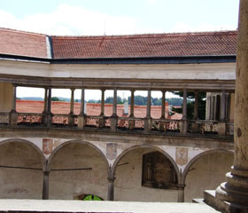 Posledním pátečním zámkem byla Moravská Třebová. Nejmenší arkády exkurze, také nejméně moravské. To proto, že Moravská Třebová leží od dob protektorátu v Čechách. Krásu zámku to však nijak nezmenšuje.