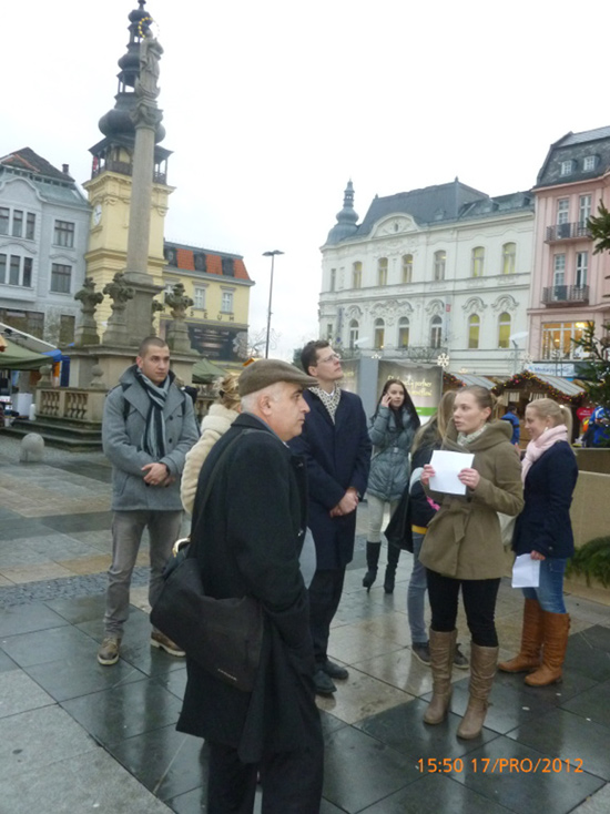 Trasa byla předem pečlivě naplánovaná. Výchozím bodem trasy byla Stará radnice na Masarykově náměstí. Tady studenti (Lukáš Moniak, Michal Pavelka, Hana Celtová, Šárka Hanáková, Aneta Pivoňková, Jitka Doležalová) seznámili hosty se vznikem Ostravy. Dále přišla na řadu historie Staré radnice a náměstí, které mělo díky své vánoční výzdobě, koledám a vůni vánočního punče báječnou atmosféru.