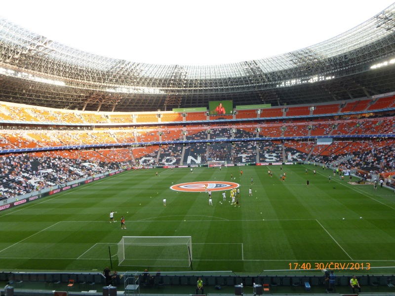 Na nádraží v Doněcku nás čekal student Nikita, který nám pomohl s ubytováním a zároveň se stal našim kamarádem a průvodcem po městě. Doněck je velice krásné město a navzdory tomu, že zde „kvete“ těžký průmysl, je toto město plné překrásných parků, historických budov, chrámů, obchodních center a kulturních památek. Dominantou města je bezesporu stadion Donbass Arena, na kterém se odehrály i zápasy fotbalového Eura 2012. Po všemožných exkurzích, procházkách a ochutnávkách místní kuchyně jsme se také nechali zlákat na fotbalový zápas mezi domácím Šachtarem a moskevským Spartakem. Na stadionu byla opravdu famózní atmosféra, takže po příjezdu z Krymu jsme ještě pár dní v Doněcku zůstali a šli na fotbal znova.