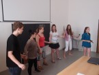 Učitelé pozorně sledovali výkony žáků ze ZŠ Bohumínská v Ostravě, kteří nacvičili své kolektivní vystoupení pod vedením Mgr. Pavla Molnára na motivy pohádky A. S. Puškina. Toto vystoupení mohli porovnat se sólovým zpěvem písní B. Okudžavy a kolektivním vystoupením studentů Gymnázia P. Bezruče z Frýdku-Místku na námět povídky A. P. Čechova. Vystoupení se středoškolskými studenty připravila Mgr. Alena Vrublová.